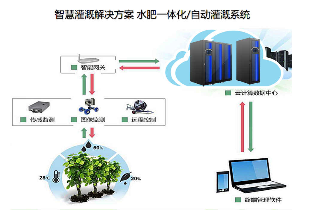 園林環(huán)境及墑情監(jiān)測(cè)優(yōu)勢(shì):實(shí)現(xiàn)管理人員對(duì)園林各個(gè)區(qū)域的環(huán)境溫度、濕度、風(fēng)速、光照、土壤水分等參數(shù)進(jìn)行監(jiān)測(cè);對(duì)園林綠化業(yè)務(wù)全流程進(jìn)行精細(xì)化管理,對(duì)環(huán)境變化可進(jìn)行認(rèn)為干預(yù),減少植物折損率;對(duì)園林噴灌用水量進(jìn)行監(jiān)控,為水資源利用提供有效的數(shù)據(jù)分析支持;根據(jù)土壤墑情及環(huán)境參數(shù)現(xiàn)狀建立用水量及灌溉方法數(shù)學(xué)模型。