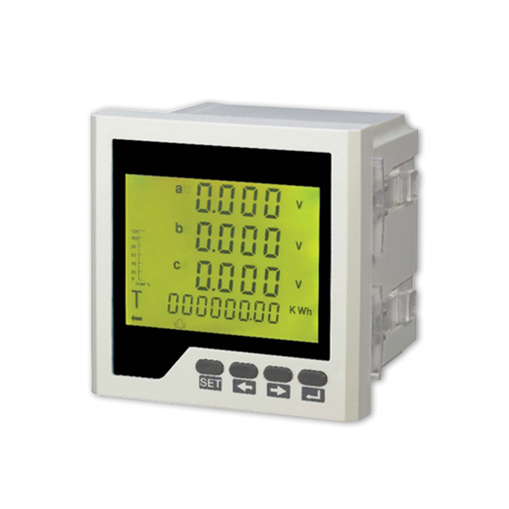 三相多功能電量?jī)x 用于檢測(cè)機(jī)房供電的三相電參數(shù)(比如各相電壓、電流、功率、頻率等參數(shù)),每個(gè)儀表的大小為96*96*96mm, 一般放置在電箱里。一般將機(jī)房供電的三相三線(xiàn)或者三相四線(xiàn)連接到儀表的前面接頭,儀表輸出信號(hào)為RS485數(shù)據(jù)通訊(二芯,雙絞線(xiàn)連接至RS485總線(xiàn)上)。